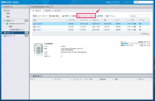 仮想マシンは例えばESXiが壊れても、データストア(仮想マシンを保存する領域)が無事であれば、再度パワーオンできる状態に戻すことができます。 具体的にはESXiを再構築後に、データストアブラウザから復旧させたい仮想マシンのvmxファイルを選択した状態で…